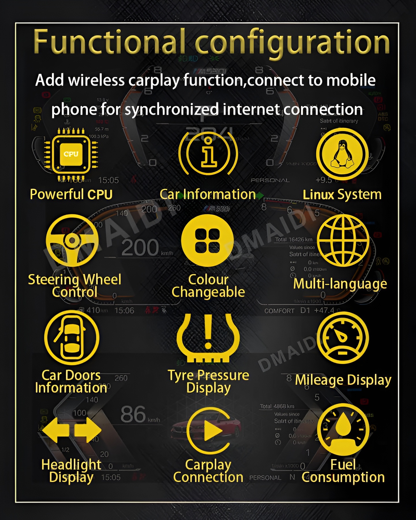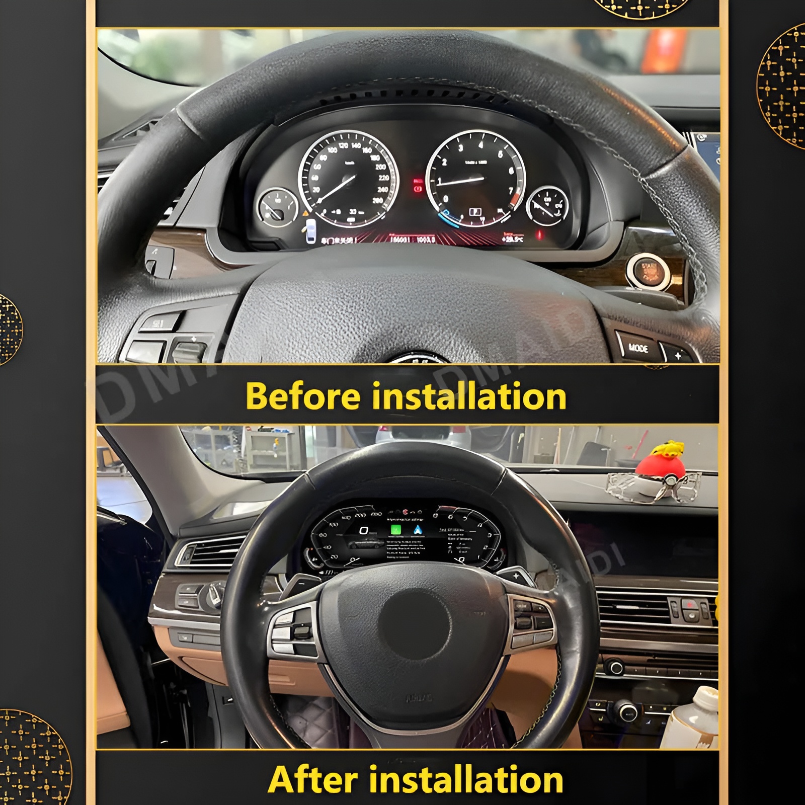 • BMW 1 2 3 4 5 6 7 X1 X3 X4 X5 X6 X7 Z4 F10 F20 F30 F34 F12 F02 F48 F25 F26 F15 F16 E60 E70 E90 E84 E89 ANDROID DIGITAL INSTRUMENTAL CLUSTER SPEEDOMEETER WITH CARPLAY