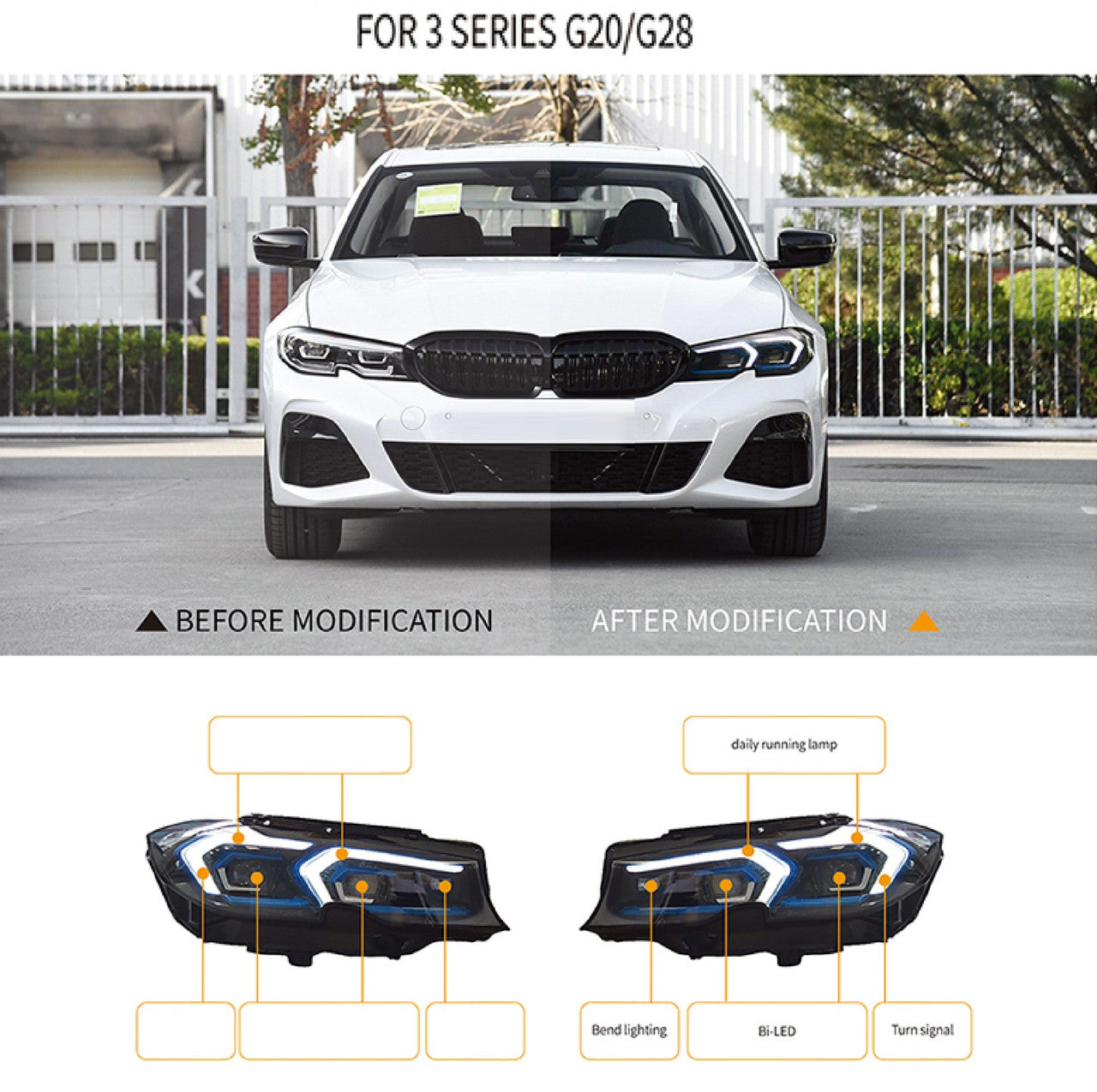 • Bmw 3 Series G20 G28 2019-2022 Car Front Upgraded Head Light Lamp Xenon Headlight Retrofit Upgrade Modified Led Drl Hid Light Lci Laser Style
