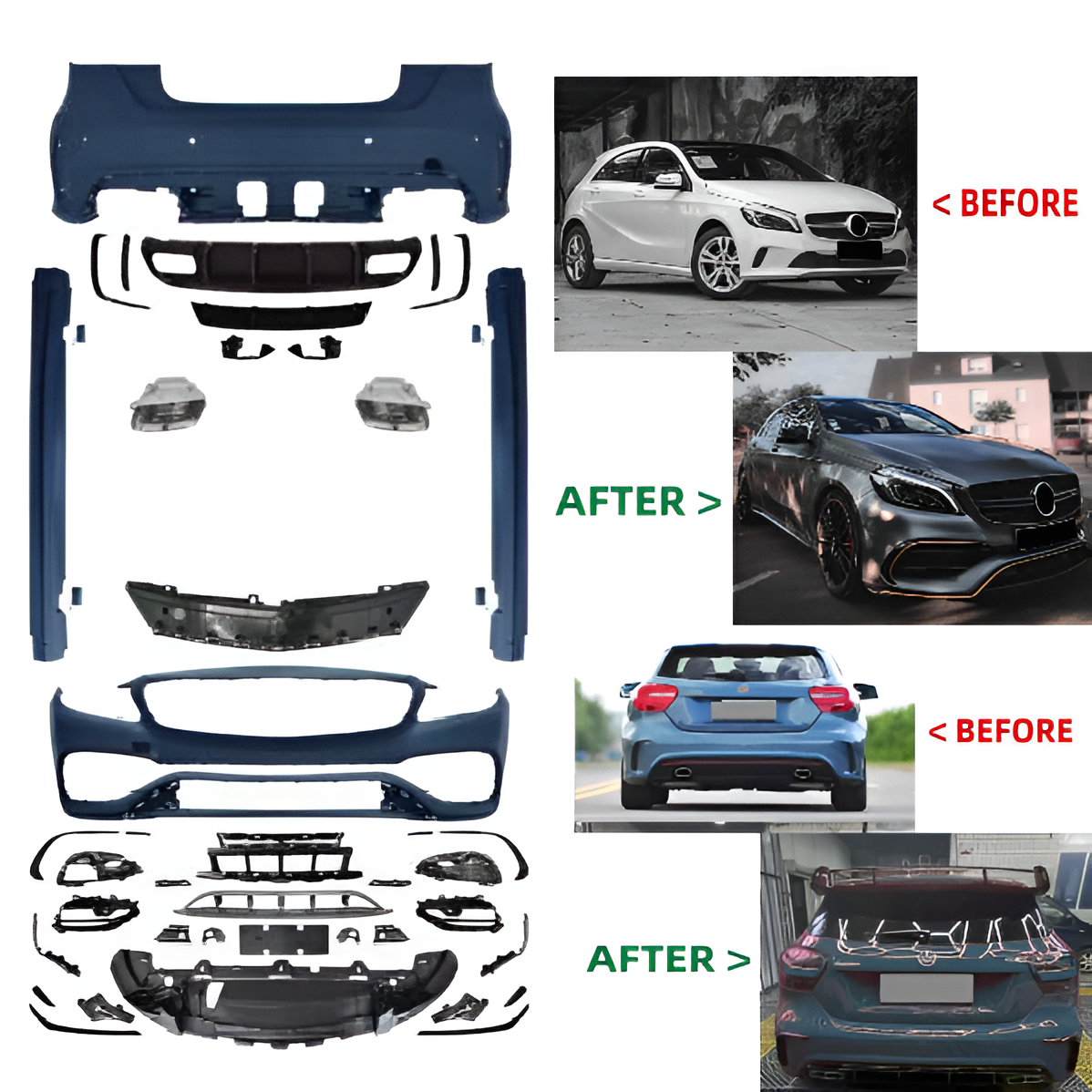 Mercedes Benz A Class W176 2012-2016 Upgrade Convert To Amg Amg45 Front Rear Bumper Diffuser Lip Exhaust Tip Pipe Side Skirt Runing Board Bodykit Set GC W176-016